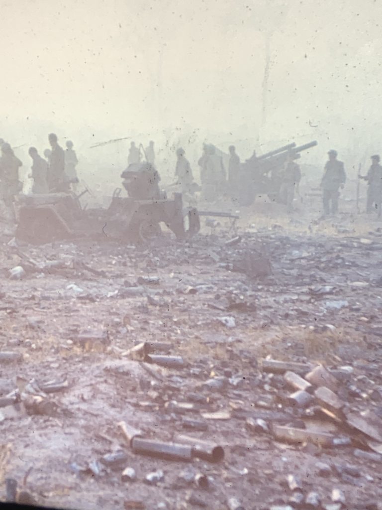 Some company commander-Killgrove?--called on the radio and said that you couldn't tell the bad guys from the good guys too many of both moving around outside the holes. I remember the order I issued "Every GI in a hole in the next five minutes after that anything moves above ground is NVA. Shoot to kill". Maybe the riskiest order I ever issued in combat. The Artillery LNO asked permission to use "beehive ammo" in a direct fire mode even though that might possibly create casualties among MANCHUS. (I reasoned that if everyone was in a hole, the risk was acceptable.)