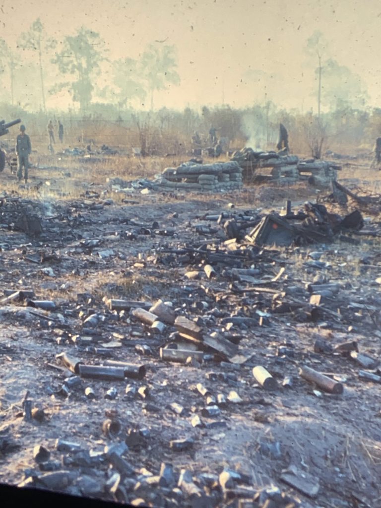The area inside of the perimeter and outside was littered with 50 - 70 dead or dying NVA. How many more our small arms, mortars, the artillery, and the bombs and napalm killed, no one will ever know how many.