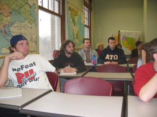 Cordery and her Vietnam Era class (HIST 340) sat with five veterans of the Vietnam War for nearly an hour and a half. Larry James, Hector Colon, Larry Ward, Dan MiKinney and John Strnad discussed their experiences as soldiers in the Vietnam War, and how it had affected them and their families.